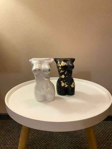 Statuete corp feminin din ipsos decorat cu elemente aurii si argingii. Decoreaza-ti interiorul intr-un mod original si elegant.